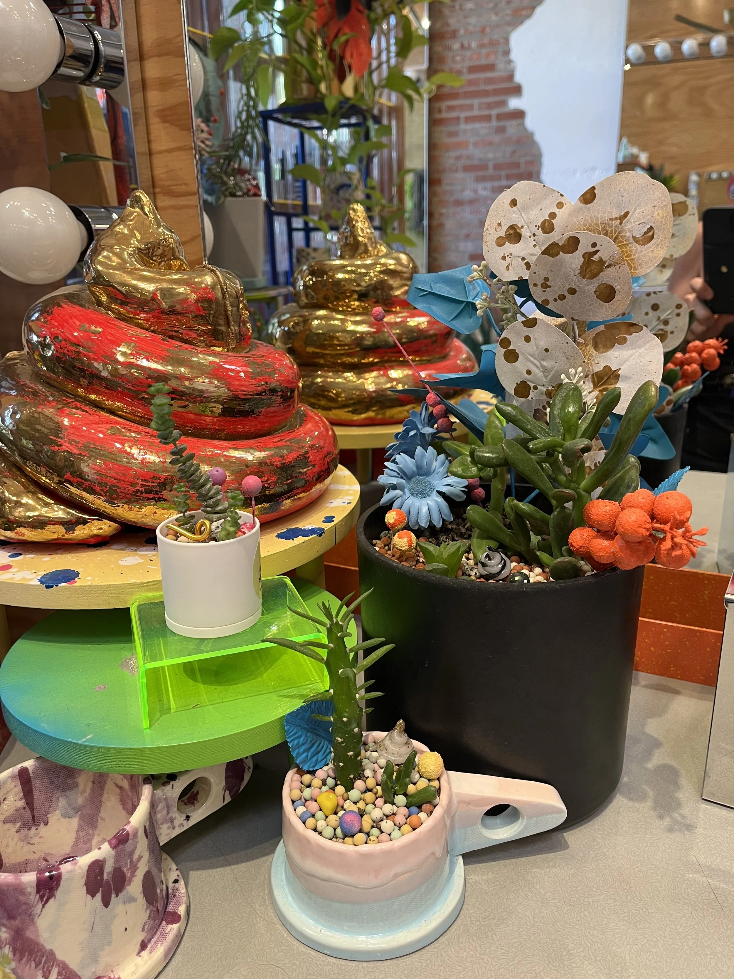 I make a lot of thing’s. We all buy thing’s...these are fancy things you can buy, solid gold poop, and floral paintings. Thank you kindly.